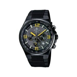 Orologio analogico al quarzo da uomo della linea Edifice. Cassa in acciaio e cinturino in resina, colorazione total black con accenti gialli fluo.