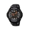 Orologio analogico-digitale con tecnologia antiurto G-Shock. Cassa in resina e cinturino in resina verde. Meccanismo al quarzo. Vetro minerale, robusto e maggiormente resistente ai graffi. Autoilluminato. Impermeabile fino a 200 m. Ricarica solare, world time, Funzioni: cronometro – 1/100 sec, allarme giornaliero, calendario automatico completo automatico. Diametro cassa 54,9 mm. Spessore 17,30 mm. Peso: 88 g.