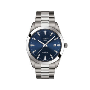 Cinturino a bracciale in titanio con chiusura a farfalla con pulsanti.